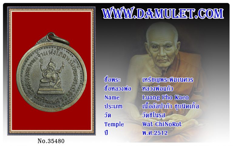 เหรียญพระพิฆเนศวร หลวงพ่อแก้ว วัดชิโนรส พ.ศ.2512