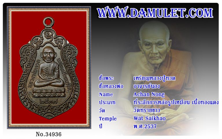 เหรียญหลวงปู่ทวด อาจารย์นอง วัดทรายขาว พ.ศ.2537