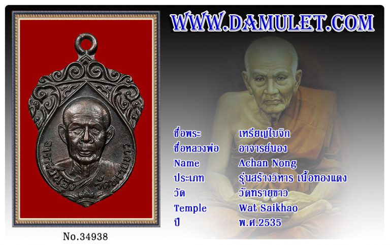 เหรียญใบจิก อาจารย์นอง วัดทรายขาว พ.ศ.2535