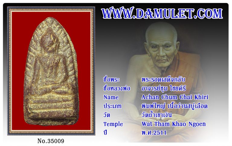 พระรอดเสด็จกลับ อาจารย์ชุม ไชยคีรี วัดถ้ำเขาเงิน พ.ศ.2511