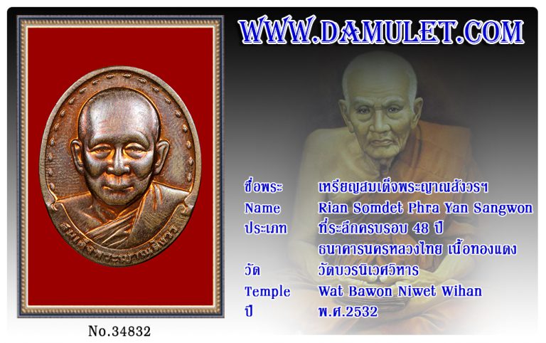 เหรียญสมเด็จพระญาณสังวรฯ วัดบวรนิเวศวิหาร พ.ศ.2532