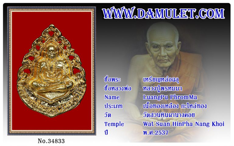 เหรียญหล่อฉลุ หลวงปู่พรหมมา วัดสวนหินผานางคอย พ.ศ.2537