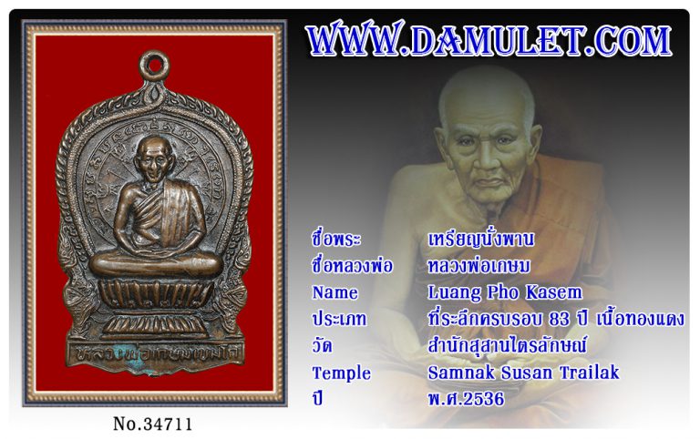 เหรียญนั่งพาน หลวงพ่อเกษม สำนักสุสานไตรลักษณ์ พ.ศ.2536