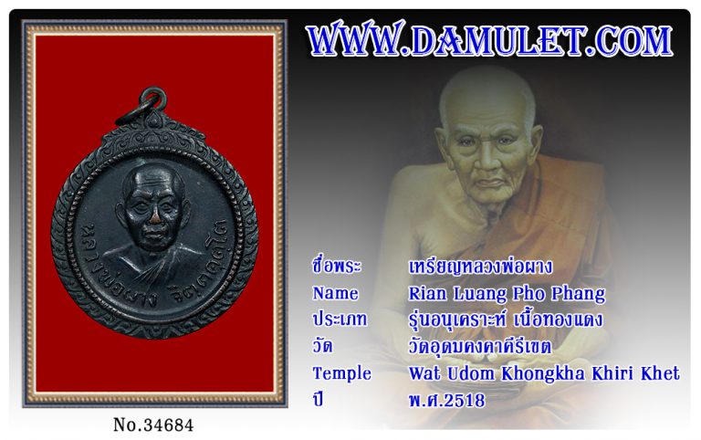 เหรียญหลวงพ่อผาง วัดอุดมคงคาคีรีเขต พ.ศ.2518