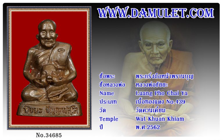 พระกริ่งถือหน้าพรานบุญ หลวงพ่อชัยยะ วัดควนเคี่ยม พ.ศ.2562