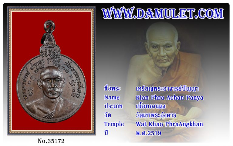 เหรียญพระอาจารย์ปัญญา วัดเขาพระอังคาร พ.ศ.2519