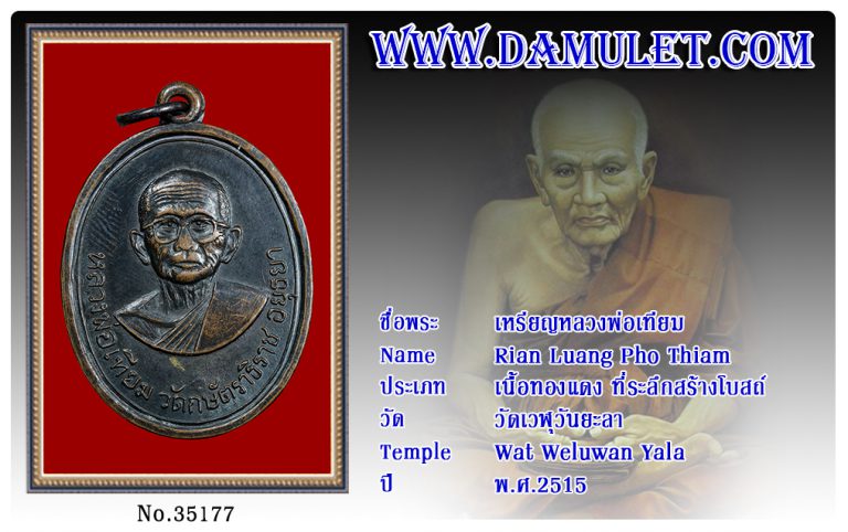 เหรียญหลวงพ่อเทียม วัดเวฬุวันยะลา พ.ศ.2515