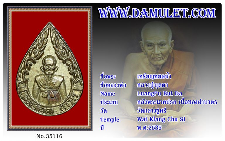 เหรียญหยดน้ำ หลวงปู่บุดดา วัดกลางชูศรี พ.ศ.2535
