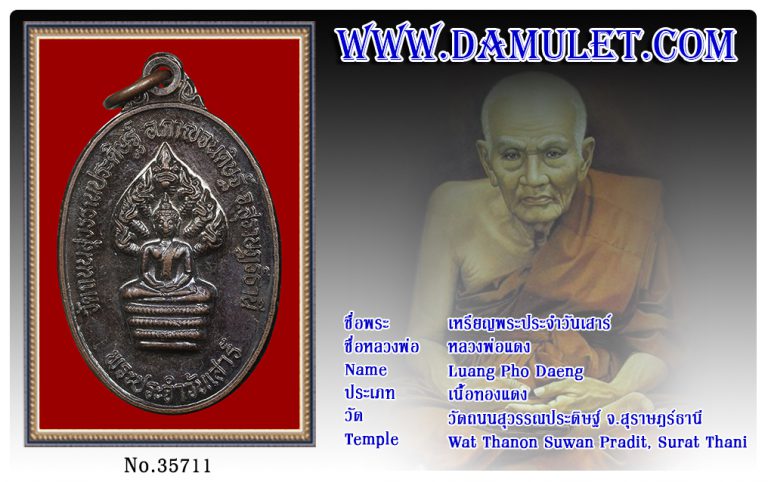 เหรียญพระประจำวันเสาร์ หลวงพ่อแดง วัดถนนสุวรรณประดิษฐ์ จ.สุราษฎร์ธานี