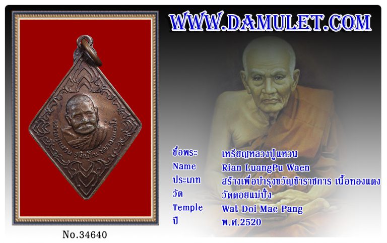 เหรียญหลวงปู่แหวน วัดดอยแม่ปั้ง พ.ศ.2520