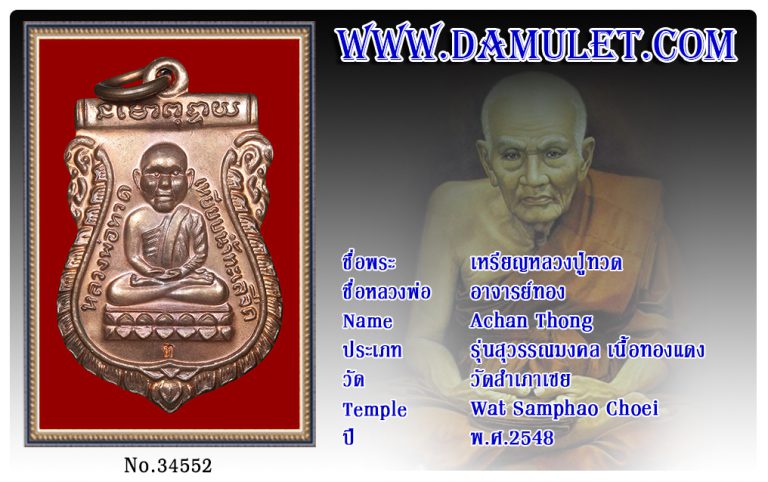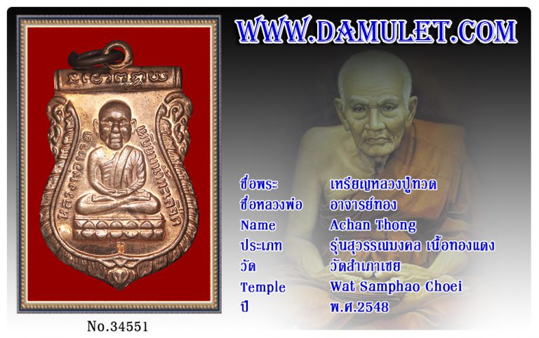 เหรียญหลวงปู่ทวด อาจารย์ทอง วัดสำเภาเชย พ.ศ.2548