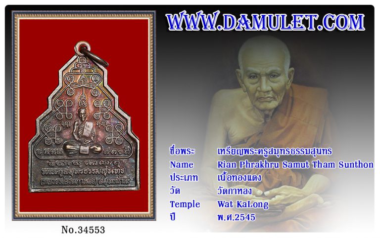เหรียญพระครูสมุทรธรรมสุนทร วัดกาหลง พ.ศ.2545