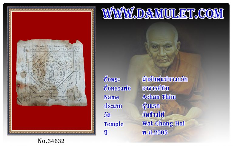 ผ้ายันต์แม่นางกวัก อาจารย์ทิม วัดช้างให้ พ.ศ.2505