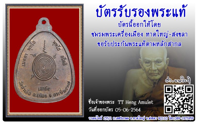 เหรียญหลวงปู่ทวด อาจารย์นอง วัดทรายขาว พ.ศ.2539
