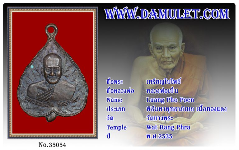 เหรียญใบโพธิ์ หลวงพ่อเปิ่นวัดบางพระ พ.ศ.2535