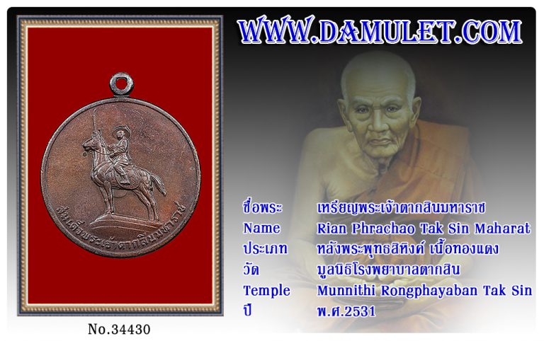 เหรียญพระเจ้าตากสินมหาราช มูลนิธิโรงพยาบาลตากสิน พ.ศ.2531