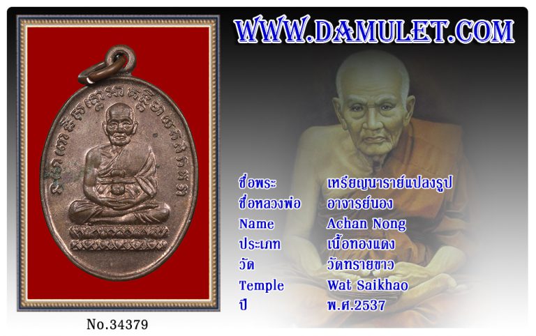 เหรียญนาราย์แปลงรูป อาจารย์นอง วัดทรายขาว พ.ศ.2537
