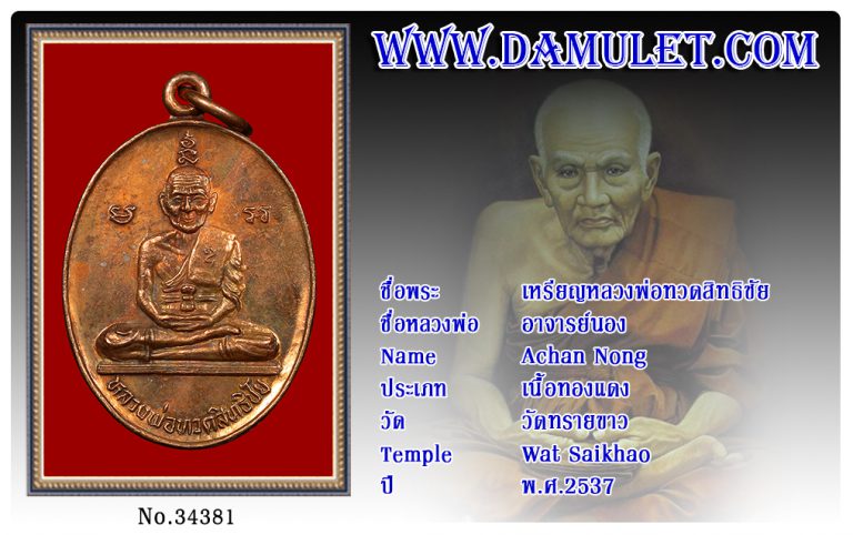 เหรียญหลวงพ่อทวดสิทธิชัย อาจารย์นอง วัดทรายขาว พ.ศ.2537