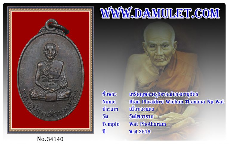 เหรียญพระครูวิจารณ์ธรรมานุวัตร วัดโพธาราม พ.ศ.2519