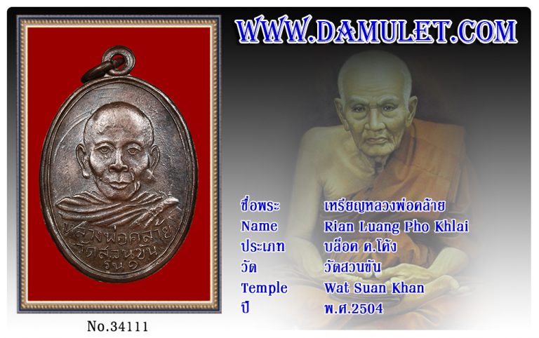 เหรียญหลวงพ่อคล้าย วัดสวนขัน พ.ศ.2504