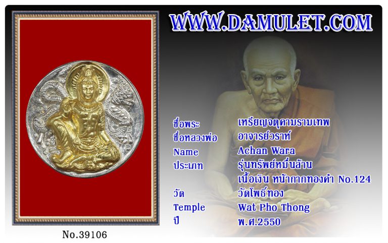 เหรียญจตุคามรามเทพ อาจารย์วราห์ วัดโพธิ์ทอง พ.ศ.2550