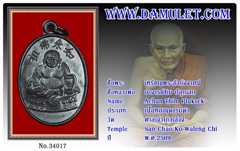 เหรียญพระสังกัจจายน์ อาจารย์ทิม ปลุกเสก ศาลเจ้าโกวเล้งจี่ พ.ศ.2509