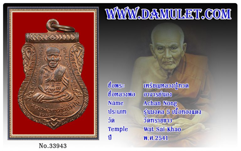 เหรียญหลวงปู่ทวด อาจารย์นอง วัดทรายขาว พ.ศ.2539