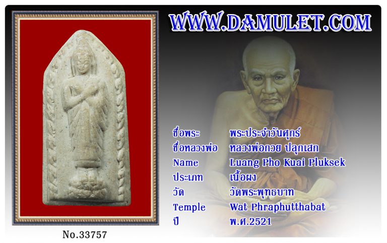 พระประจำวันศุกร์ หลวงพ่อกวย ปลุกเสก วัดพระพุทธบาท พ.ศ.2521