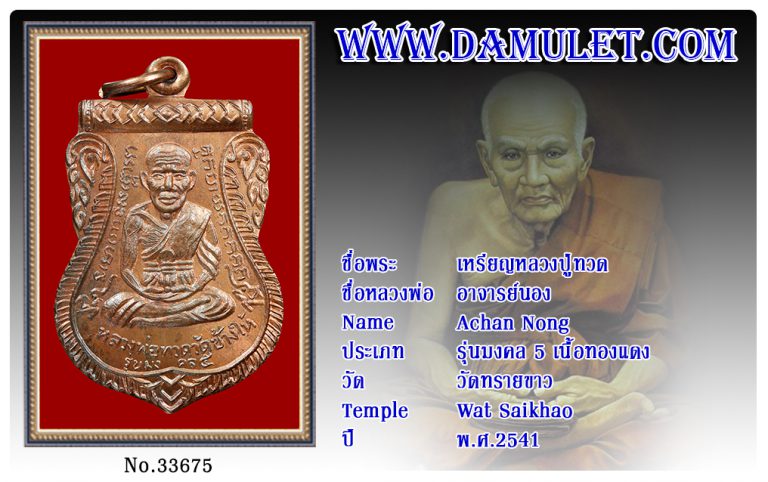 เหรียญหลวงปู่ทวด อาจารย์นอง วัดทรายขาว พ.ศ.2541