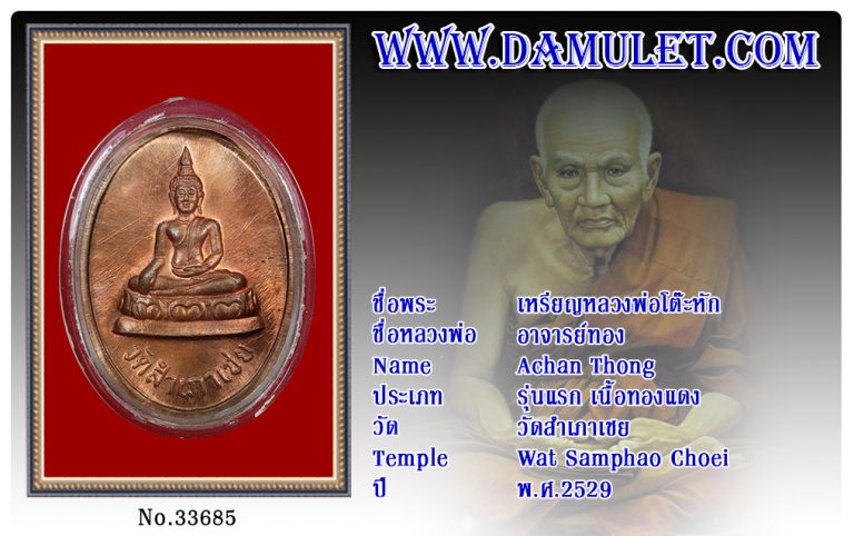 เหรียญหลวงพ่อโต๊ะหัก อาจารย์ทอง วัดสำเภาเชย พ.ศ.2529