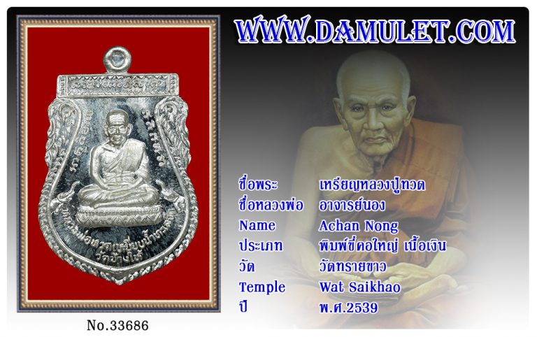 เหรียญหลวงปู่ทวด อาจารย์นอง วัดทรายขาว พ.ศ.2539