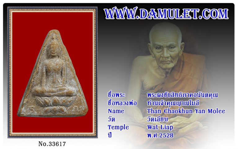 พระผงชัยสิทธิภาคอนันตคุณ ท่านเจ้าคุณญาณโมลี วัดเลียบ พ.ศ.2528