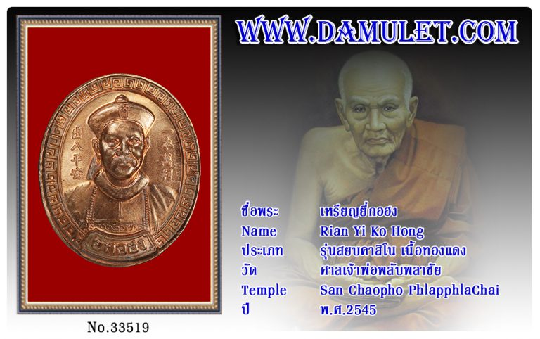 เหรียญยี่กอฮก ศาลเจ้าพ่อพลับพลาชัย พ.ศ.2545