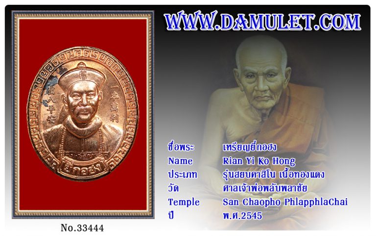 เหรียญยี่กอฮง ศาลเจ้าพ่อพลับพลาชัย พ.ศ.2545