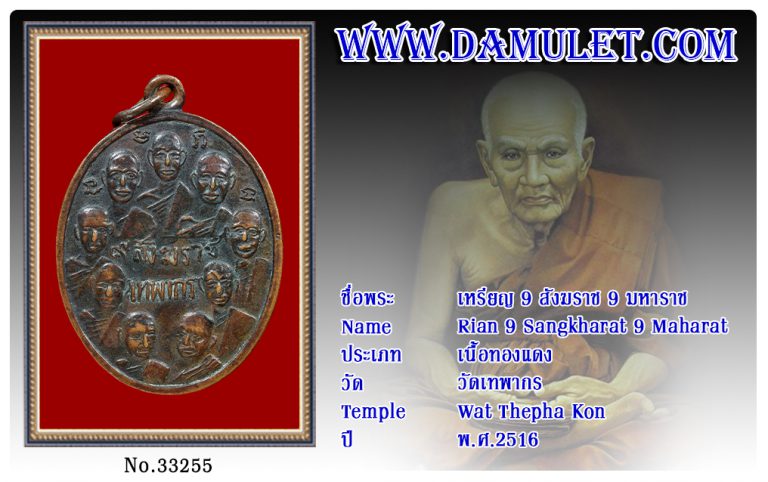 เหรียญ 9 สังฆราช 9 มหาราช วัดเทพากร พ.ศ.2516
