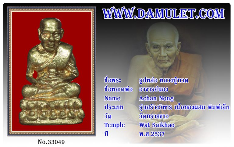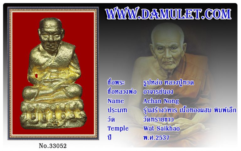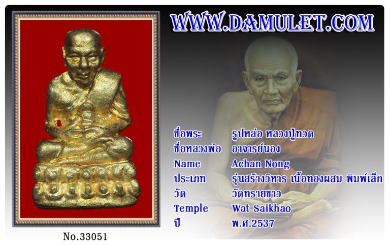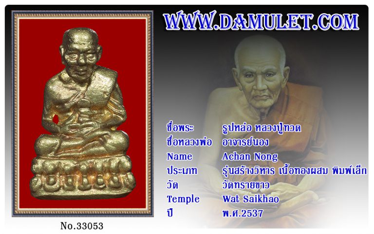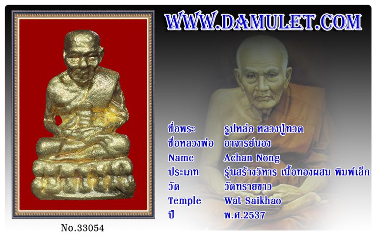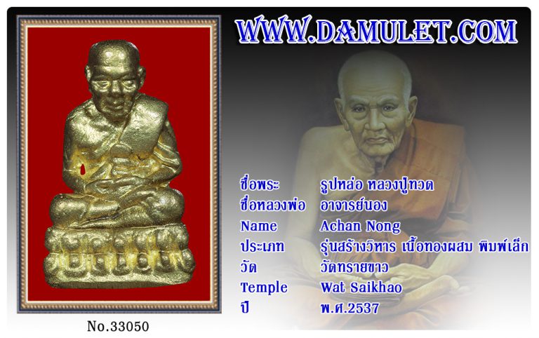 รูปหล่อ หลวงปู่ทวดอาจารย์นองวัดทรายขาว พ.ศ.2537