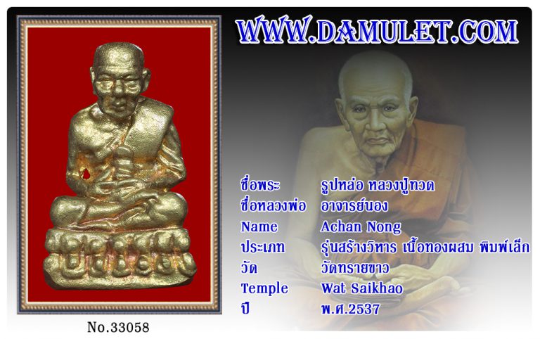 รูปหล่อ หลวงปู่ทวด อาจารย์นอง วัดทรายขาว พ.ศ.2537