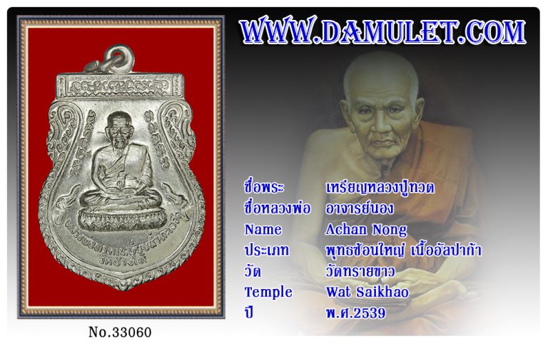 เหรียญหลวงปู่ทวด อาจารย์นอง วัดทรายขาว พ.ศ.2539
