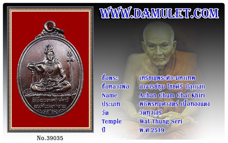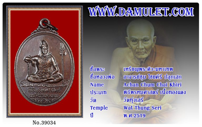เหรียญพระศิวะมหาเทพ อาจารย์ชุม ไชยคีรี ปลุกเสก วัดทุ่งเสรี พ.ศ.2519