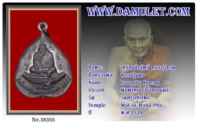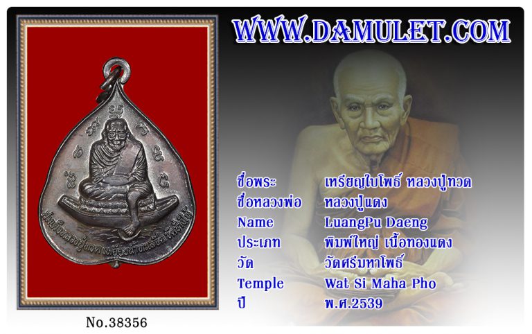 เหรียญใบโพธิ์ หลวงปู่ทวด หลวงปู่แดง วัดศรีมหาโพธิ์ พ.ศ.2539
