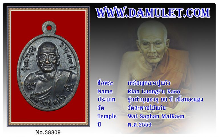เหรียญหลวงปู่แก้ว วัดสะพานไม้แก่น พ.ศ.2553