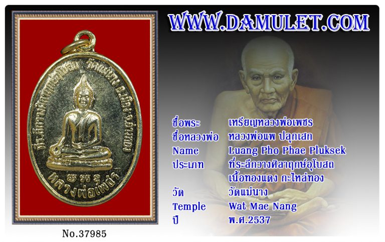 เหรียญหลวงพ่อเพชร หลวงพ่อแพ ปลุกเสก วัดแม่นาง พ.ศ.2537