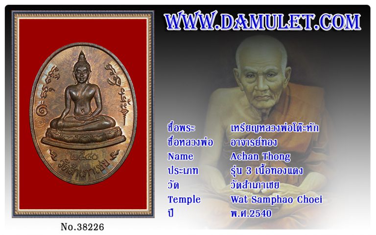 เหรียญหลวงพ่อโต๊ะหัก อาจารย์ทอง วัดสำเภาเชย พ.ศ.2540