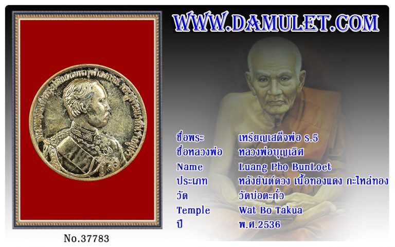 เหรียญเสด็จพ่อ ร.5 หลวงพ่อบุญเลิศ วัดบ่อตะกั่ว พ.ศ.2536
