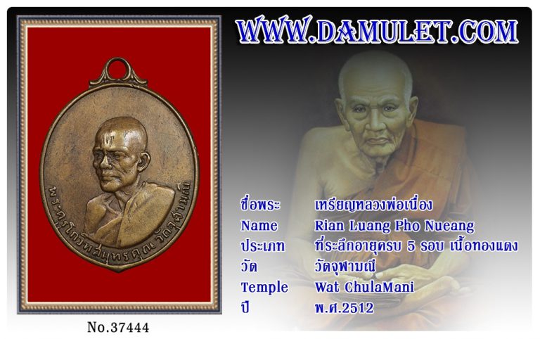 เหรียญหลวงพ่อเนื่อง วัดจุฬามณี พ.ศ.2512