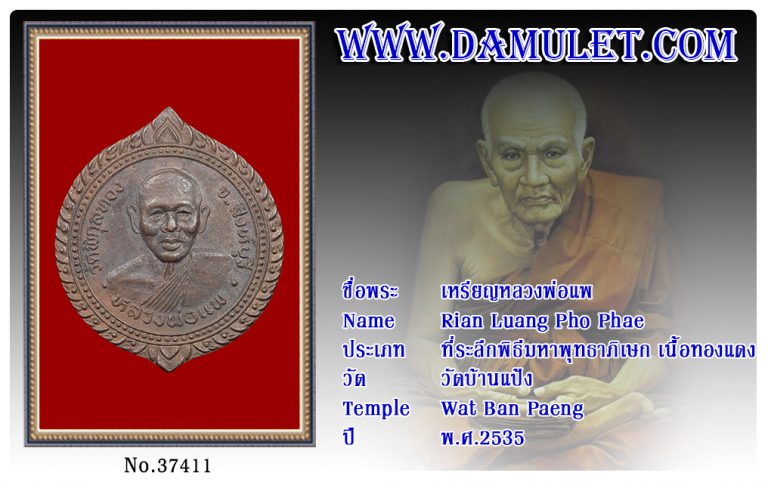 เหรียญหลวงพ่อแพ วัดบ้านแป้ง พ.ศ.2536