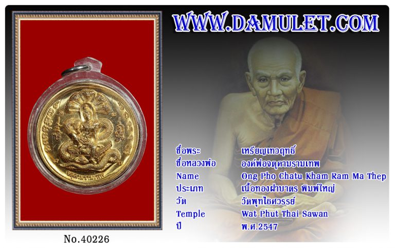 เหรียญเทวฤทธิ์ องค์พ่อจตุคามรามเทพ วัดพุทไธศวรรย์ พ.ศ.2547