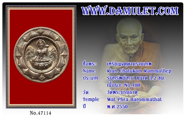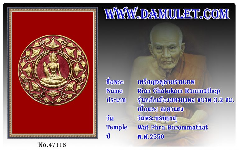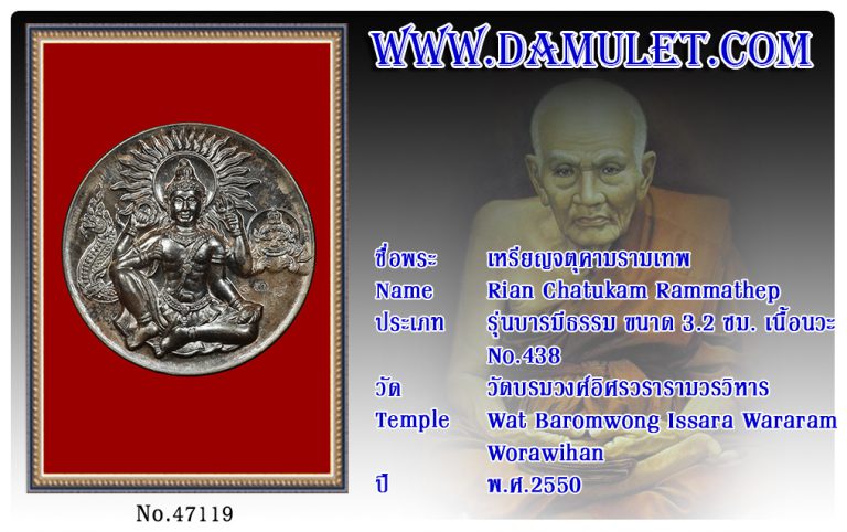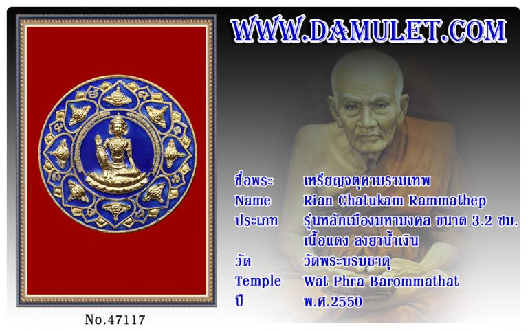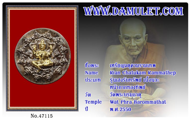 เหรียญจตุคามรามเทพ วัดบรมวงศิอิสรวรามวรวิหาร พ.ศ.2550