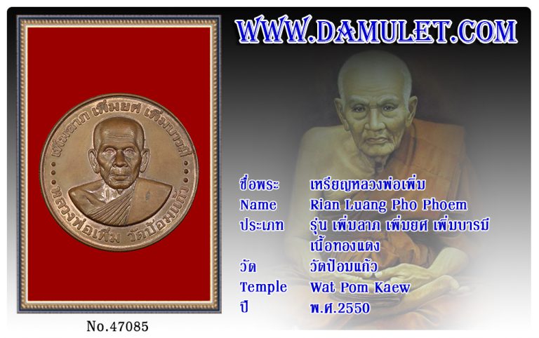 เหรียญหลวงพ่อเพิ่ม วัดป้อมแก้ว พ.ศ.2550