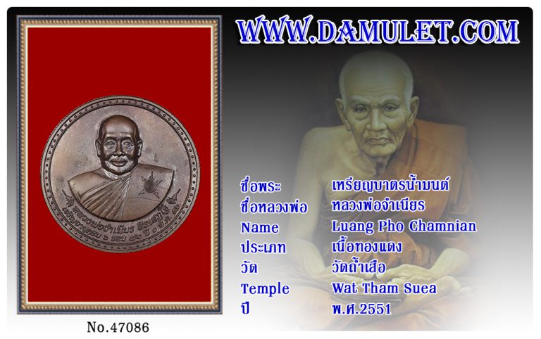 เหรียญบาตรน้ำมนต์ หลวงพ่อจำเนียร วัดถ้ำเสือ พ.ศ.2551